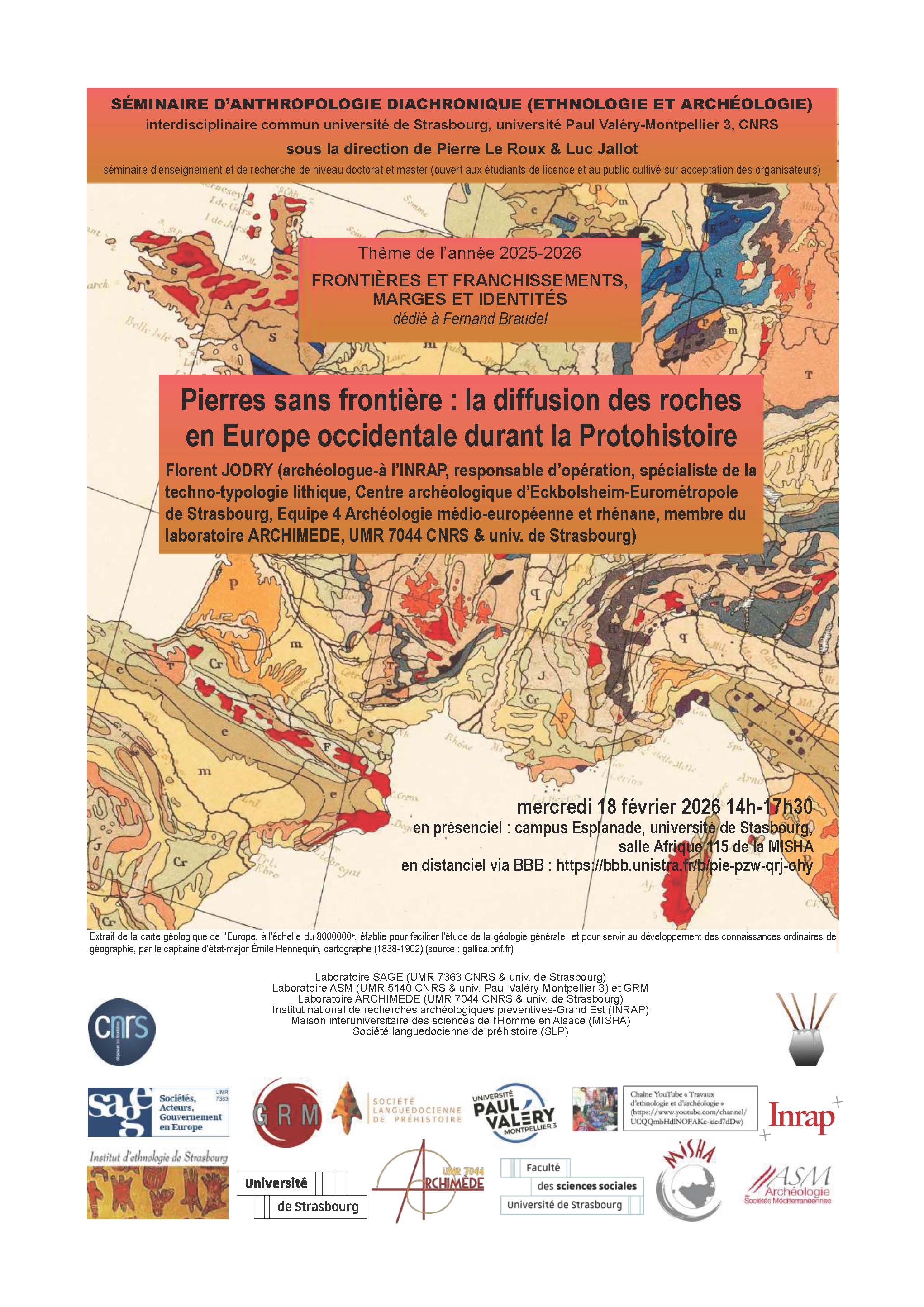 The Archaeology and Ancient History in the Mediterranean Area joint research unit (Archéologie et histoire ancienne: Méditerranée Europe – ArcHiMèdE) brings together researchers from the French National Centre for Scientific Research (Centre national de la recherche scientifique – CNRS), teacher-researchers from the University of Strasbourg (Unistra) and the Université de Haute-Alsace (UHA), archaeologists from the French Ministry of Culture and preventive archaeology specialists (Inrap, Archéologie Alsace, Antea archéologie, GéoArchéOn). It enjoys a privileged strategic location at the heart of Europe, which enables it to participate in major cross-border networks (Collegium Beatus Rhenanus, Franco-German Doctoral College) and to attract new partnerships. The UMR has an exceptional wealth of scientific resources, with its own research library at the Alsace Interuniversity House for the Social Sciences and Humanities (Maison interuniversitaire des sciences de l'Homme - Alsace (Misha) and a number of cultural heritage collections (Egyptian and Greco-Roman antiquities, numismatics, casts of ancient works, old photographs, including glass plates). It is also working on the publication of the Strasbourg National University Library's (Bibliothèque Nationale Universitaire de Strasbourg – BNUS) ancient collections (cuneiform tablets, papyri, ostraka). There is also the Zoological Museum's (Musée Zoologique) bone collection, which houses the bones of most of the mammals likely to be found in archaeological sites from the Mesolithic to the contemporary period in temperate Europe.