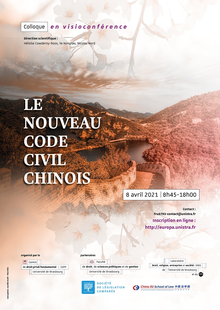Un Colloque intitulé « Le nouveau code civil chinois » aura lieu le 8 avril à 8h30 en ligne. Il est organisé par le centre de droit privé fondamental.