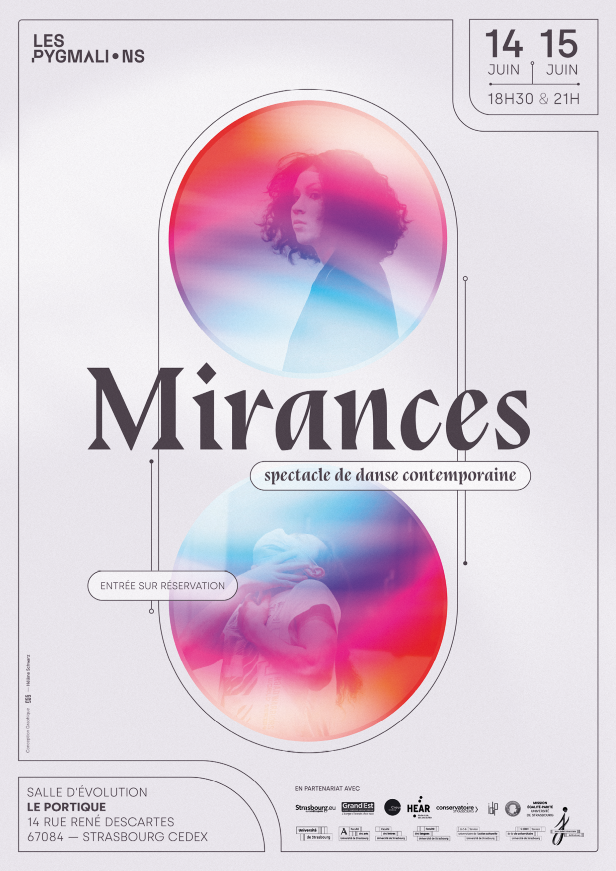 Un spectacle chorégraphique intitulé « Mirances » aura lieu le lundi 14 juin à 18h30 et 21h ainsi que le mardi 15 juin deux fois aux mêmes heures, dans la salle Évolution du Portique, sur le campus de l'Esplanade de Strasbourg.