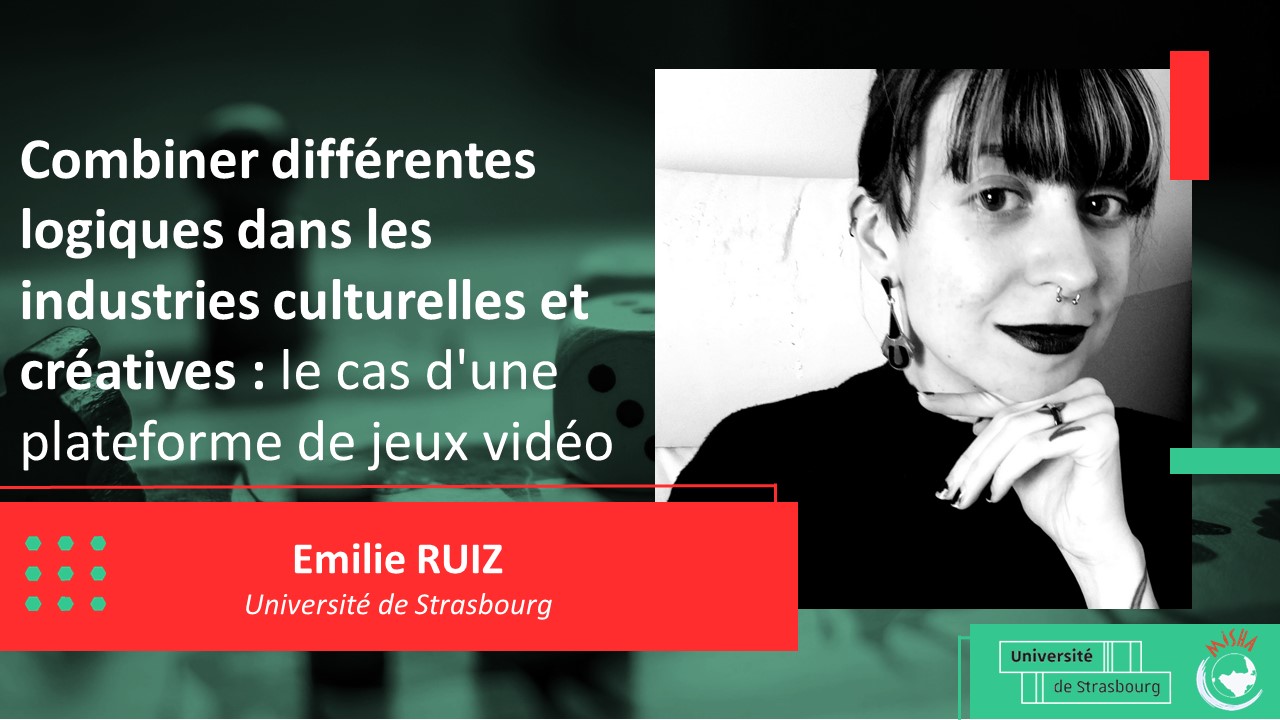 Un webinaire intitulé  « Combiner différentes logiques dans les industries culturelles et créatives : le cas d'une plateforme de jeux vidéo » aura lieu le mardi 1er juin à 18h avec Emilie Ruiz.