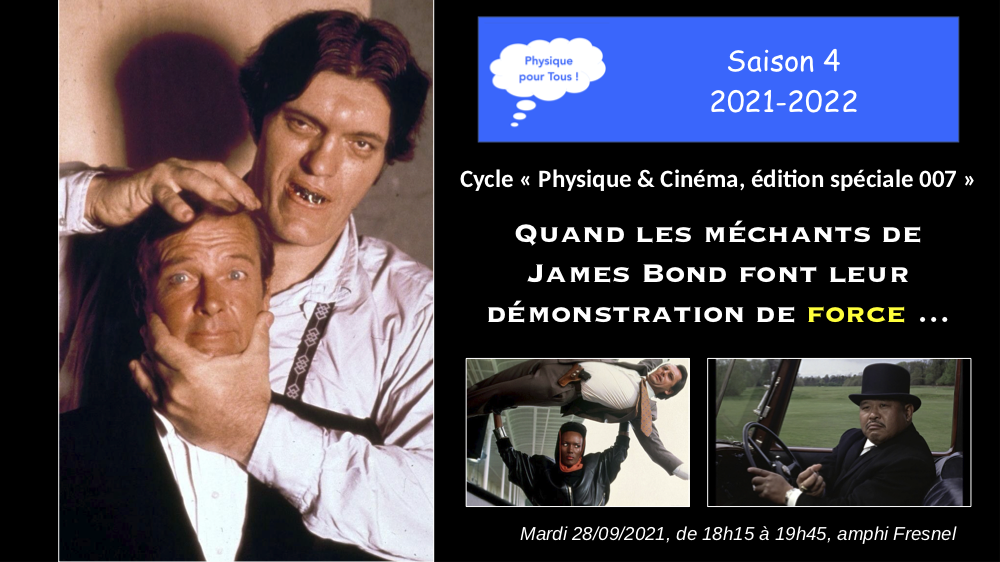 Tout le programme 2021-22 : http://physiquepourtous.unistra.fr/cycle-de-rentree-physique-cinema-james-bond/