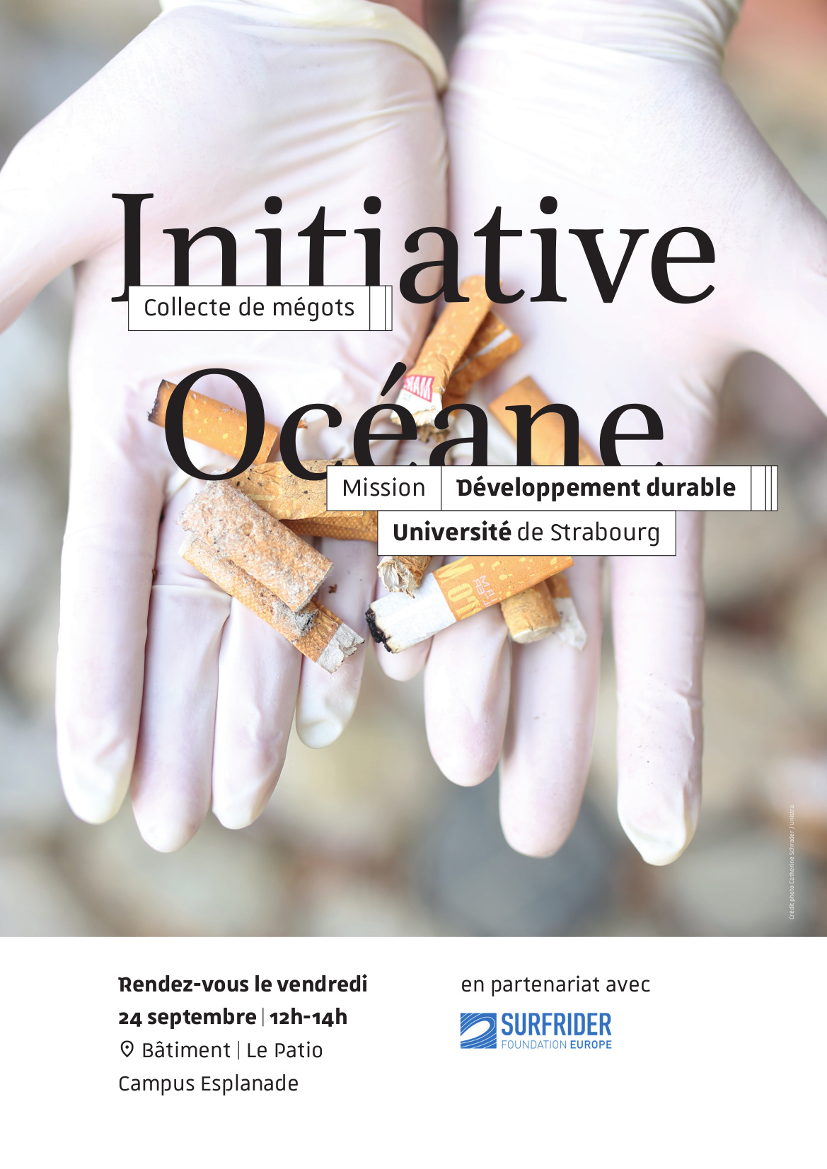 L’antenne bénévole Surfrider Bas-Rhin, en partenariat avec la cellule Développement durable de l'Université de Strasbourg vous invite à participer à une opération de collecte de mégots sur le campus de l’Université de Strasbourg, vendredi 24 septembre, entre 12 h et 14 h.