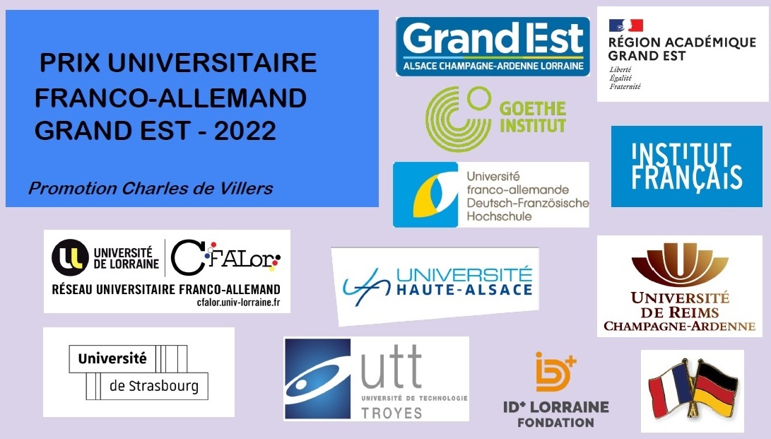 Une cérémonie de remise du Prix universitaire franco-allemand Grand Est, Promotion 2022 Charles de Villers aura lieu le vendredi 21 janvier en ligne.