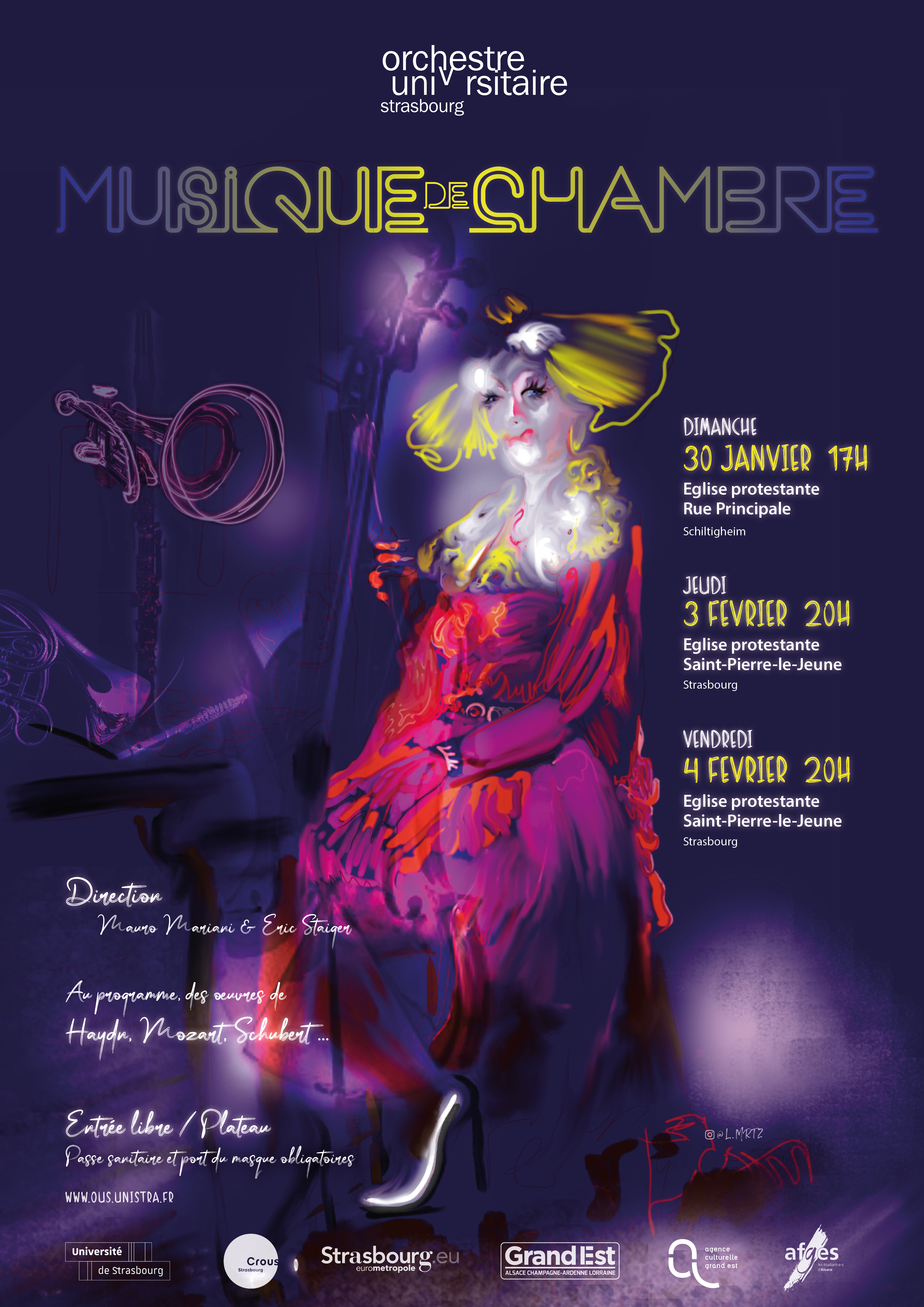 Un concert de musique de chambre de l'Orchestre universitaire de l'Université aura lieu le jeudi 3 février à 20h à l'Eglise Saint-Pierre le jeune protestante à Strasbourg.