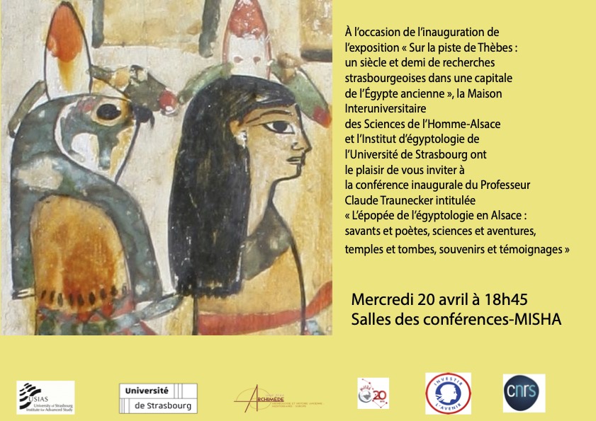 À l’occasion de l’inauguration d’une exposition de la Collection égyptienne de notre université, pour les 20 ans de la MISHA, les 150 ans de l’égyptologie alsacienne (1872-2022) et les 200 ans du déchiffrement des hiéroglyphes (1822-2022), une conférence intitulée « L’épopée de l’égyptologie en Alsace » aura lieu le mercredi 20 avril à 18h45 à la Misha.