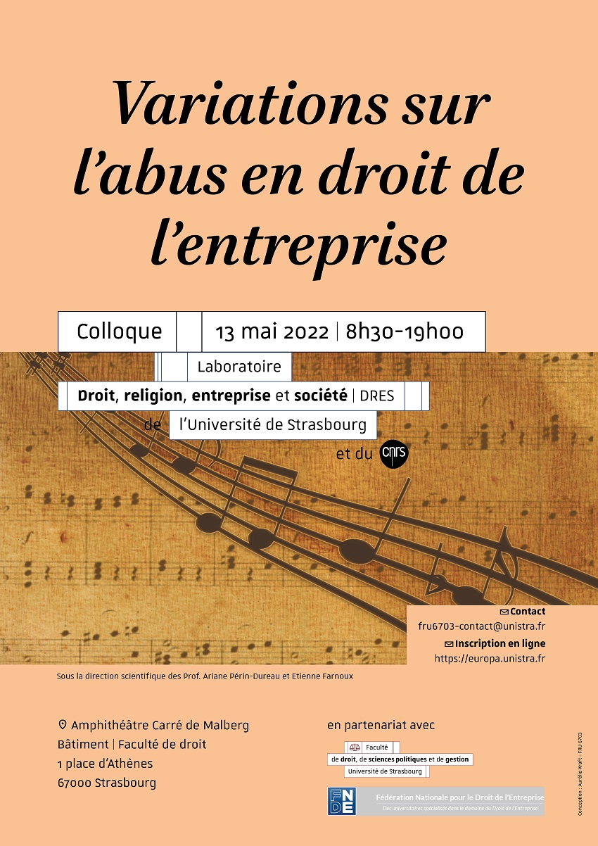 Colloque intitulé « Variations sur l'abus en droit de l'entreprise » aura lieu le vendredi 13 mai à 8h30 à la Faculté de droit.