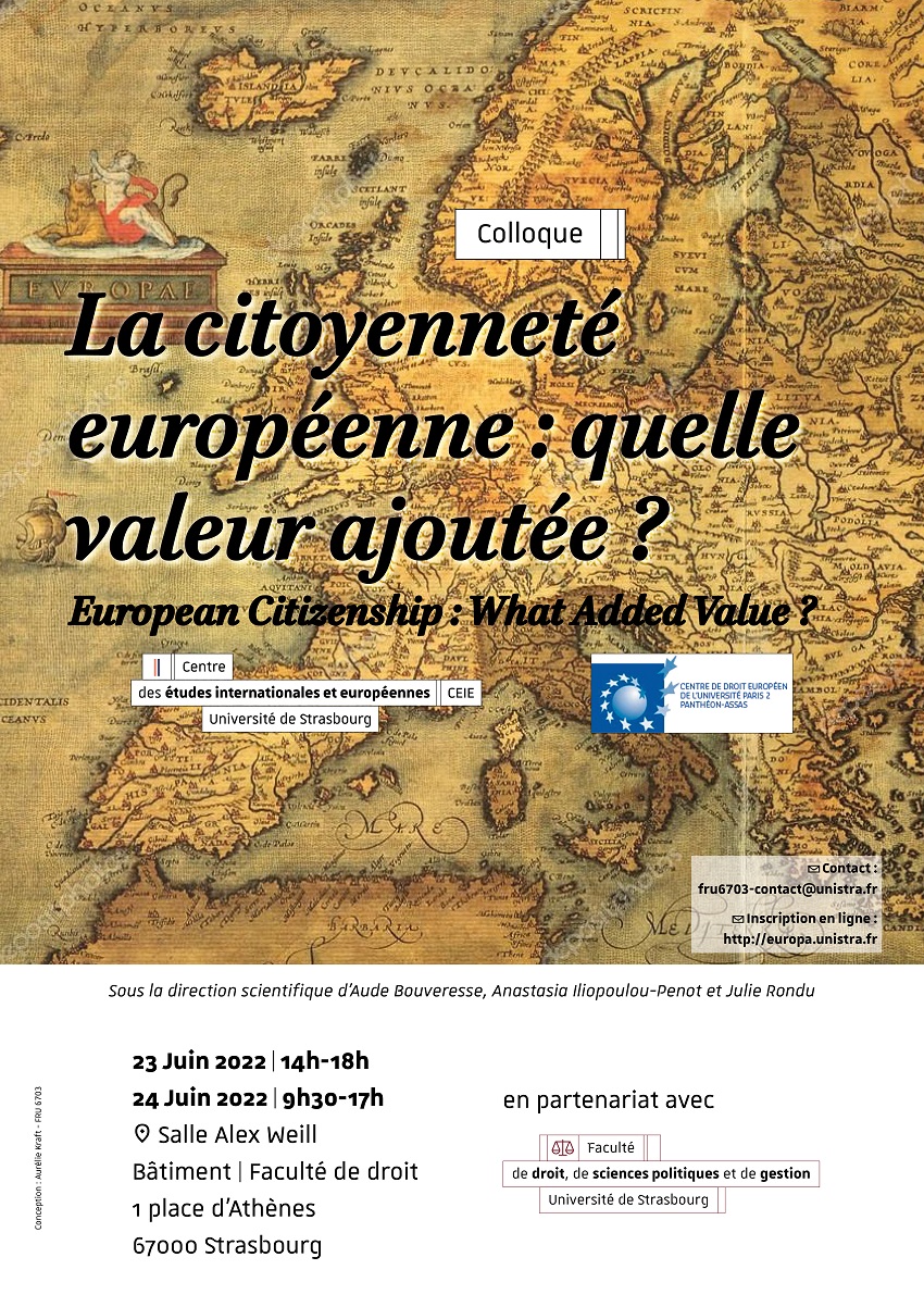 Un colloque intitulé « La citoyenneté européenne : quelle valeur ajoutée ? » aura lieu le organisé par le jeudi 23 juin à 14h à la Faculté de droit.