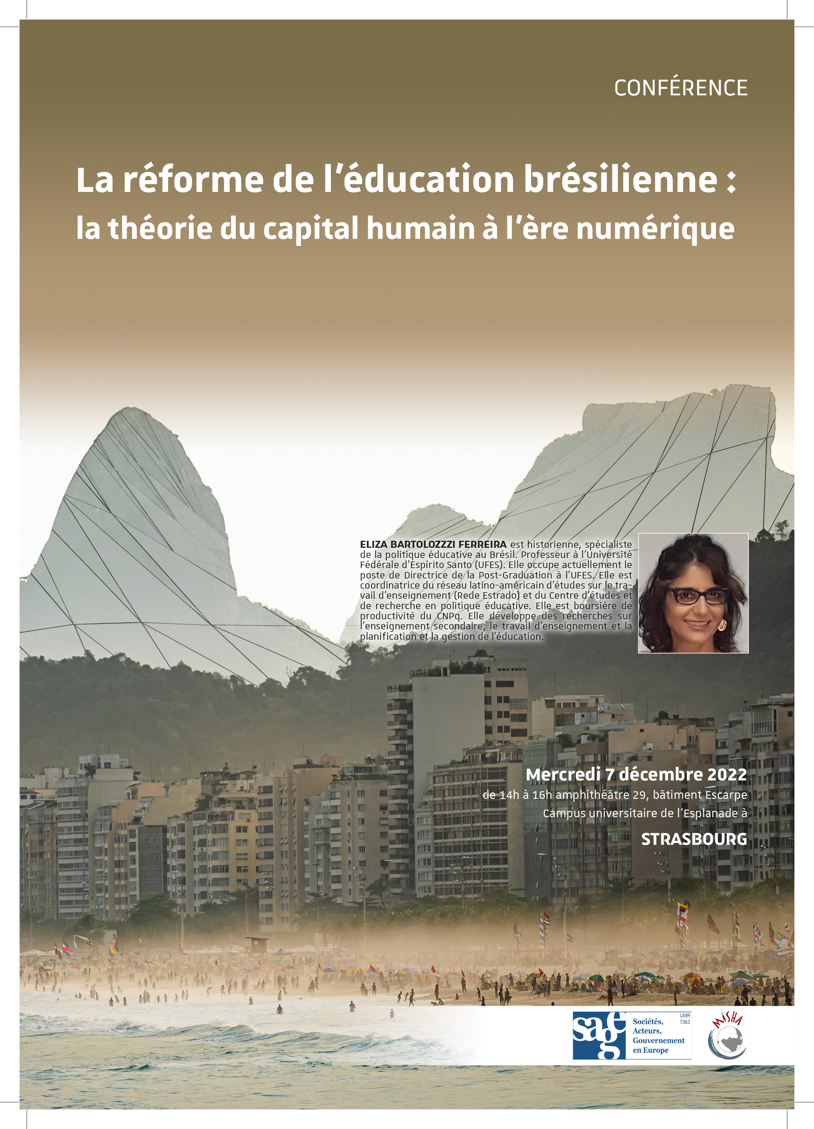Une conférence intitulée « La réforme de l'éducation brésilienne : la théorie du capital humain à l'ère numérique » aura lieu le mercredi 7 décembre à 14 h à l'Escarpe sur le campus de l'Esplanade.