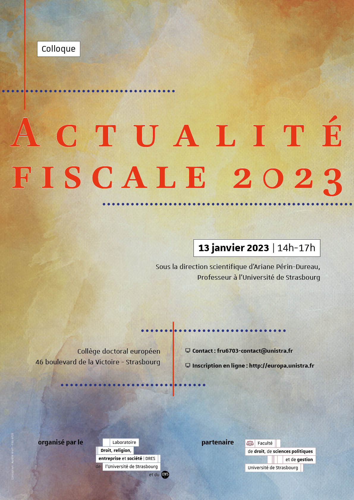 Un colloque intitulé « Actualité fiscale 2023 » aura lieu vendredi 13 janvier à 14h au Collège doctoral européen.