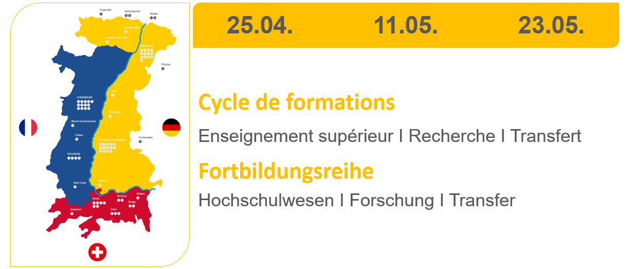 Un cycle de formations tripartite en ligne sur « les systèmes de l’enseignement supérieur, de la recherche et du transfert en France, en Allemagne et en Suisse » avec un focus sur le Rhin supérieur aura lieu mardi 25 avril à partir de 9h30.
