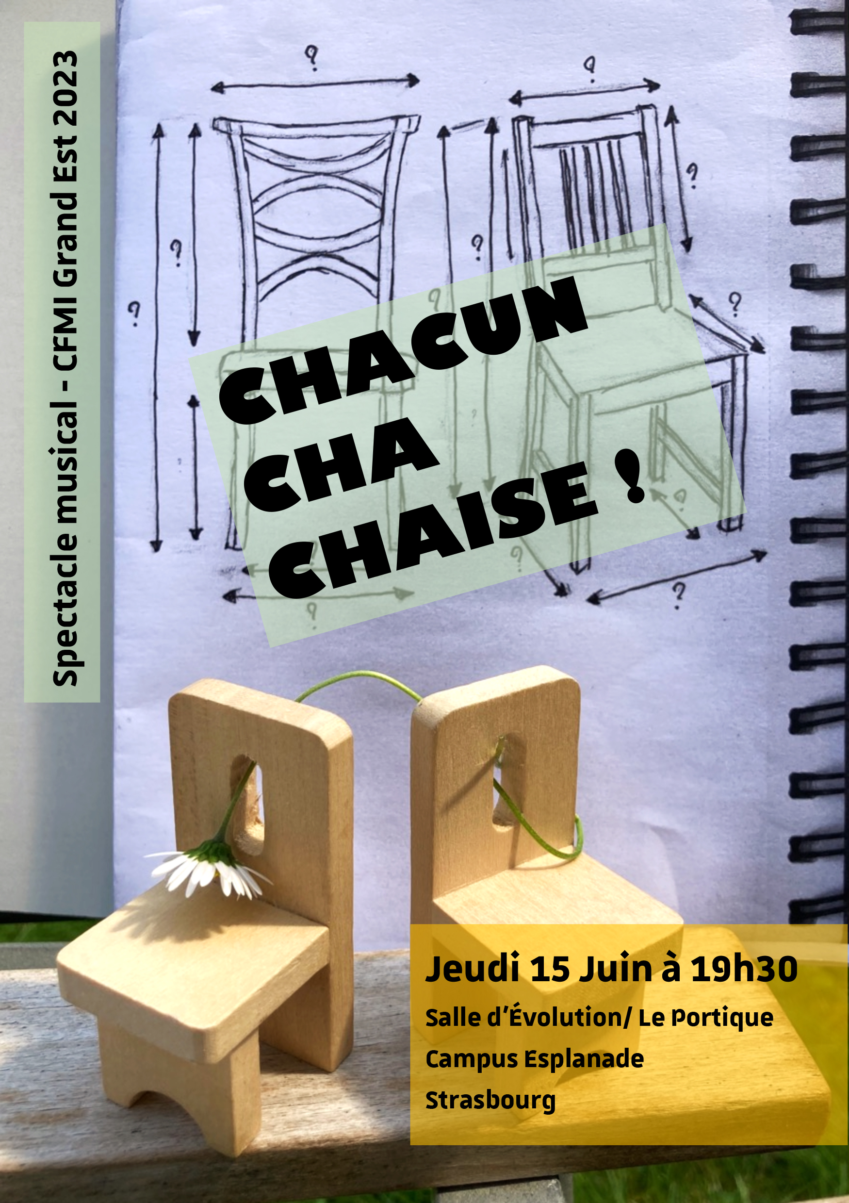 Un spectacle musical intitulé « Chacun cha chaise ! » aura lieu jeudi 15 juin à 19h30 dans la salle Évolution du Portique.