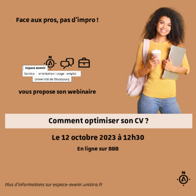 Un webinaire intitulé « Comment optimiser son CV : conseils et astuces » aura lieu jeudi 12 octobre.