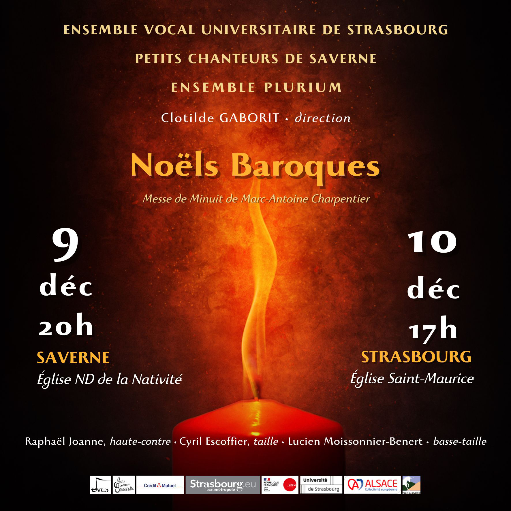 L'Ensemble vocal universitaire de Strasbourg donnera un concert intitulé « Noëls Baroques » samedi 9 décembre à 20h à l'Église Notre-Dame de la Nativité de Saverne.