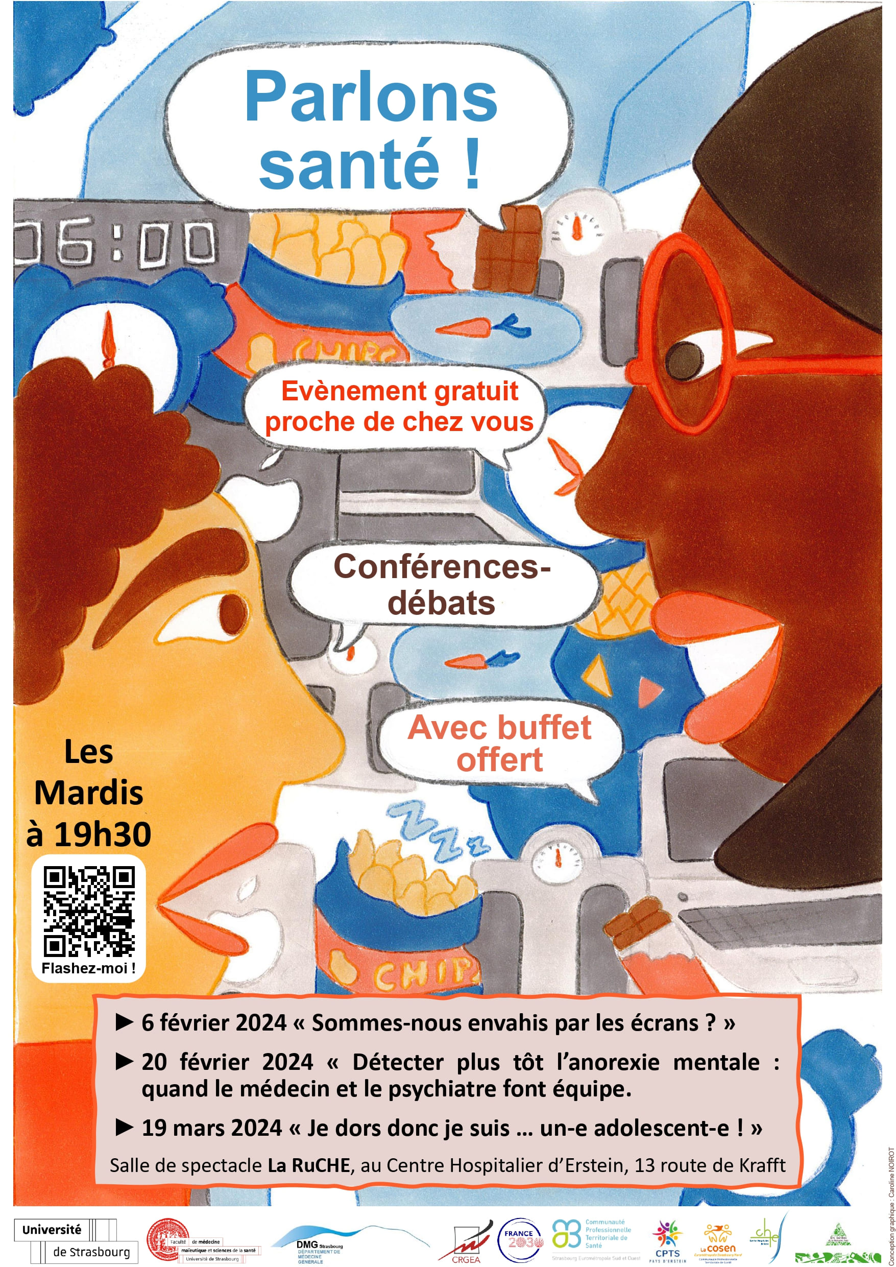 L’entrée est gratuite et, pour prolonger les échanges, les soirées s’achèveront par un buffet dinatoire offert à toutes et tous.