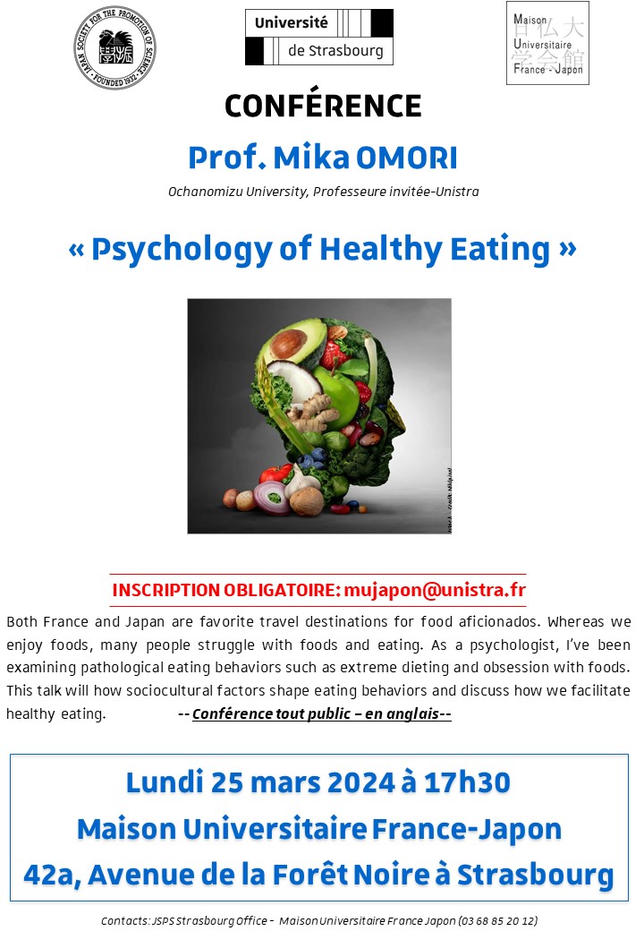 Une conférence intitulée « Psychology of Healthy Eating » aura lieu lundi 25 mars à 17h30 à la Maison universitaire France-Japon.