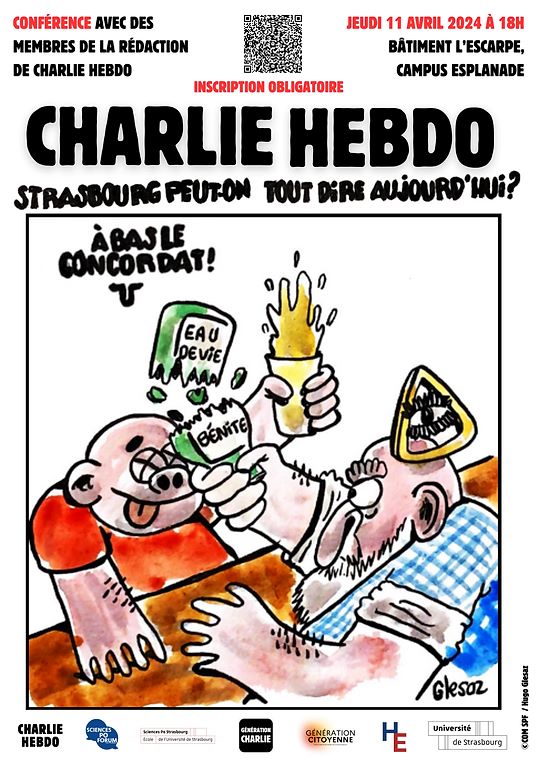 Une conférence Charlie Hebdo intitulée « Peut-on tout dire aujourd’hui ? » aura lieu jeudi 11 avril à 18h à l'Escarpe sur le campus de l'Esplanade.