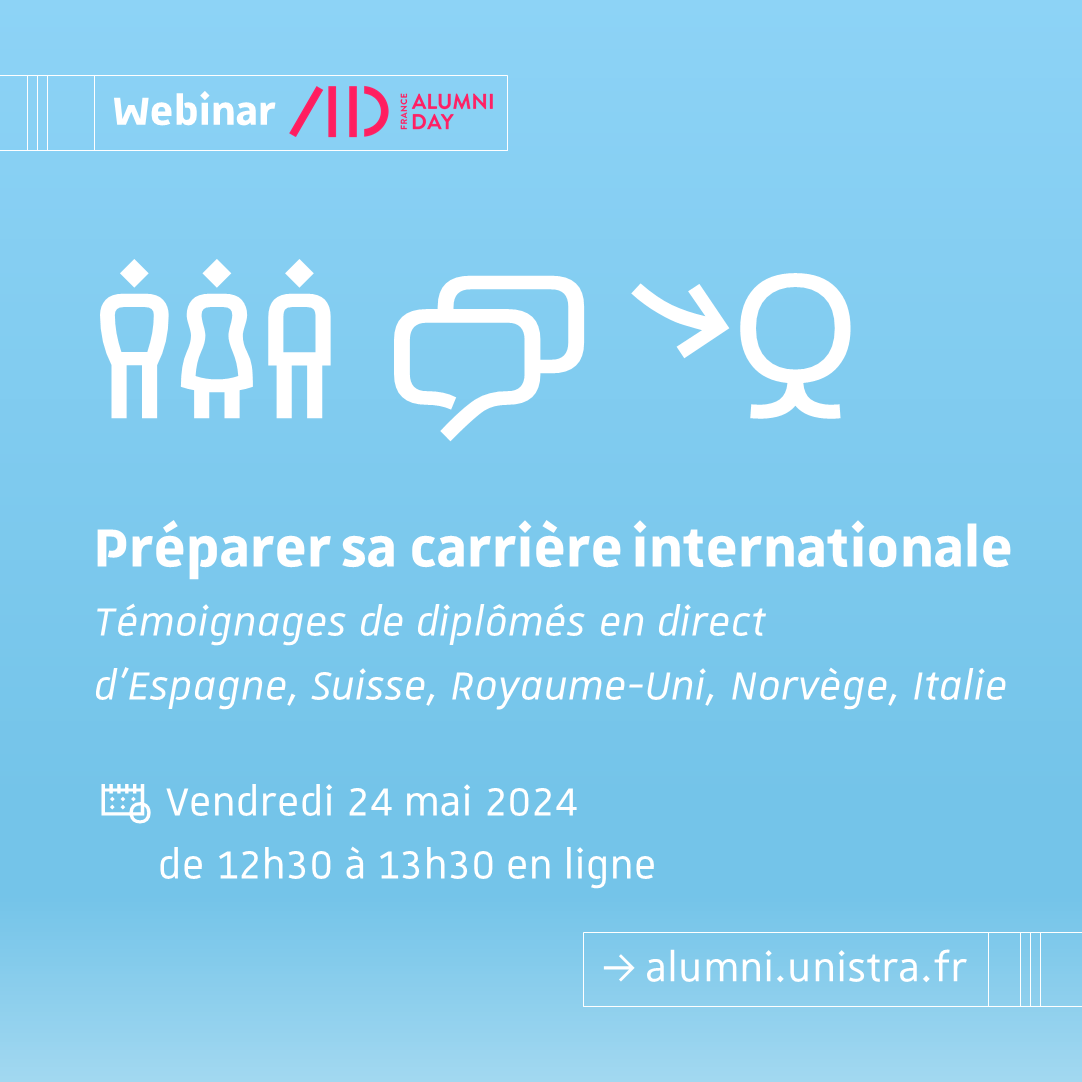 Avec l’intervention de 5 ambassadeurs Alumni internationaux, obtenez des conseils précieux, élargissez votre réseau mondial et laissez-vous inspirer par des parcours professionnels remarquables. Qui sait, vous pourriez être le prochain talent strasbourgeois à briller à l’échelle mondiale !