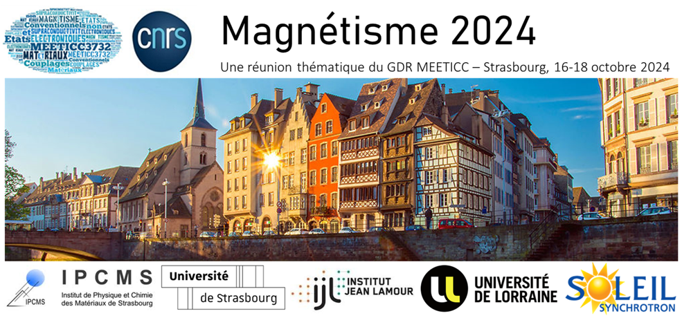 Un colloque « Magnétisme 2024 » est une réunion thématique du GDR MEETICC qui aura lieu du mercredi 16 au ventredi 18 octobre au Collège Doctoral Européen (CDE).