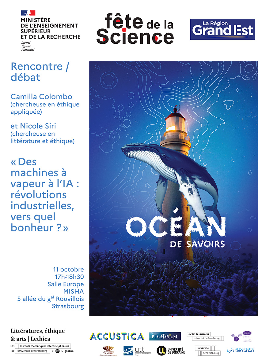 Une conférence grand public de Camilla Colombo intitulée « Des machines à vapeur à l'IA : révolutions industrielles, vers quel bonheur ? » aura lieu vendredi 11 octobre à 17h30 à la Maison interuniversitaire des sciences de l'homme - Alsace (Misha).