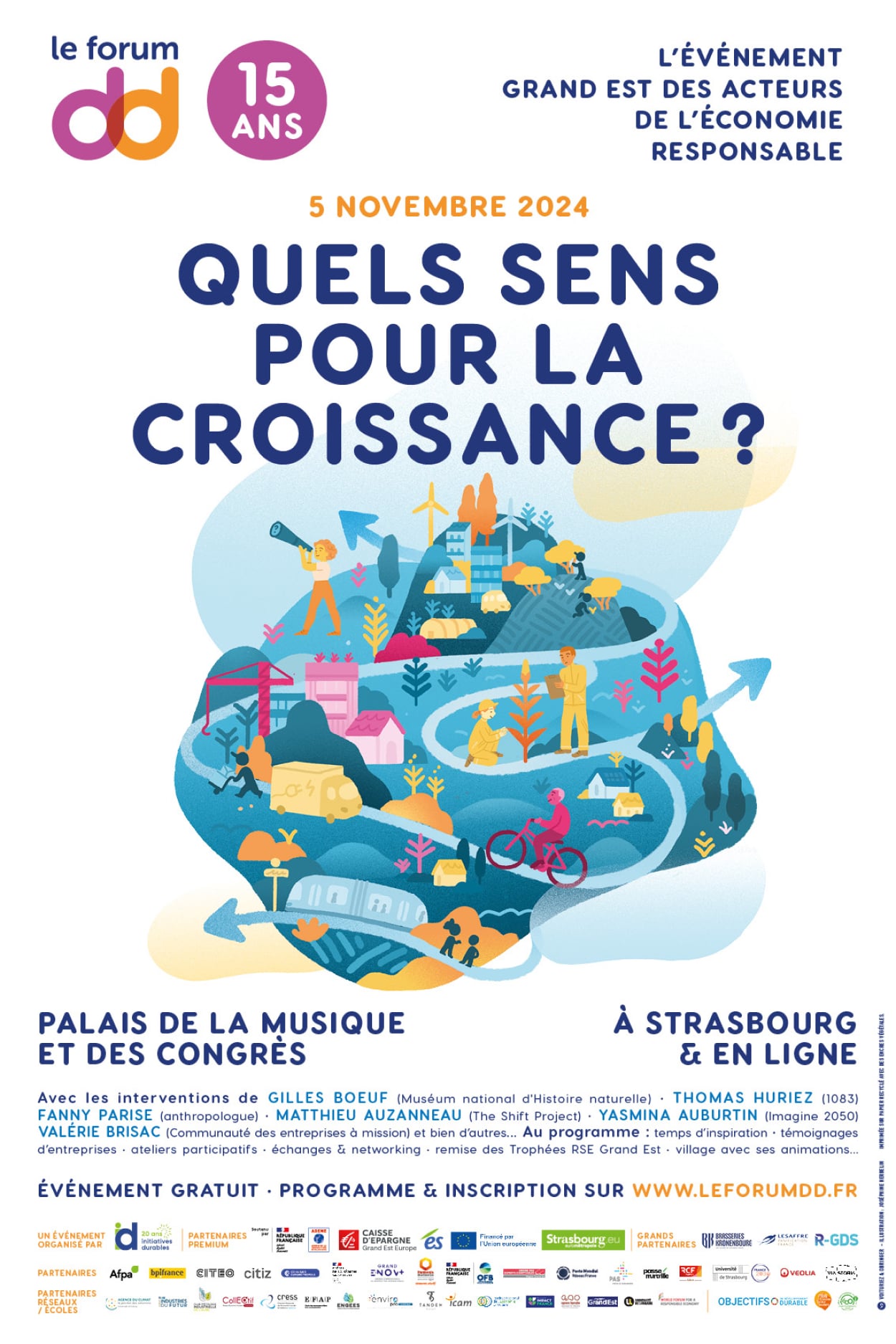 « Quels sens pour la croissance ? » C’est la thématique de cette 15ème édition du Forum du  développement  durable auquel l’université de Strasbourg est partenaire. Rendez-vous mardi 5  novembre  2024  au  Palais  de  la Musique et des Congrès de Strasbourg et en ligne.