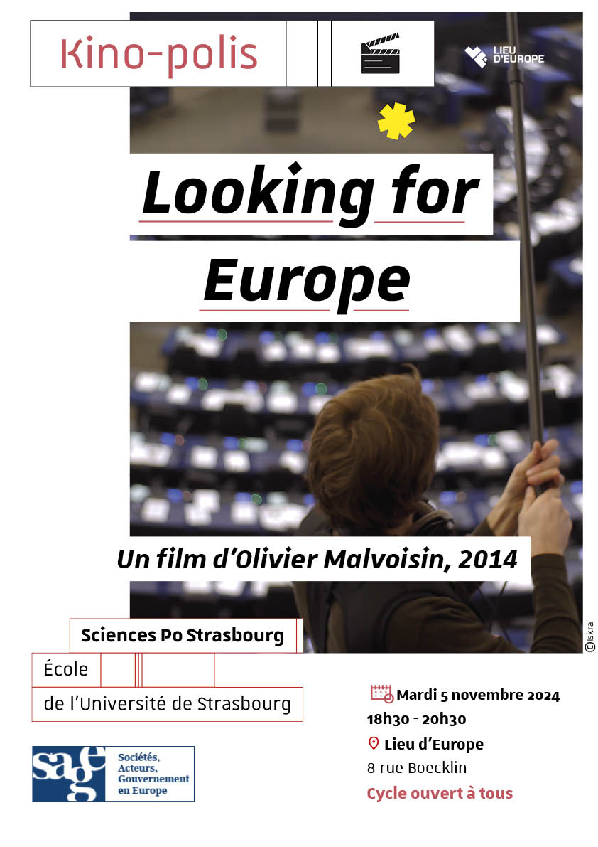 La première projection Kino-Polis de cette nouvelle année universitaire portera sur le film d'Olivier Malvoisin, « Looking for Europe », aura lieu mardi 5 novembre à 18h30 au Lieu d'Europe à Strasbourg.