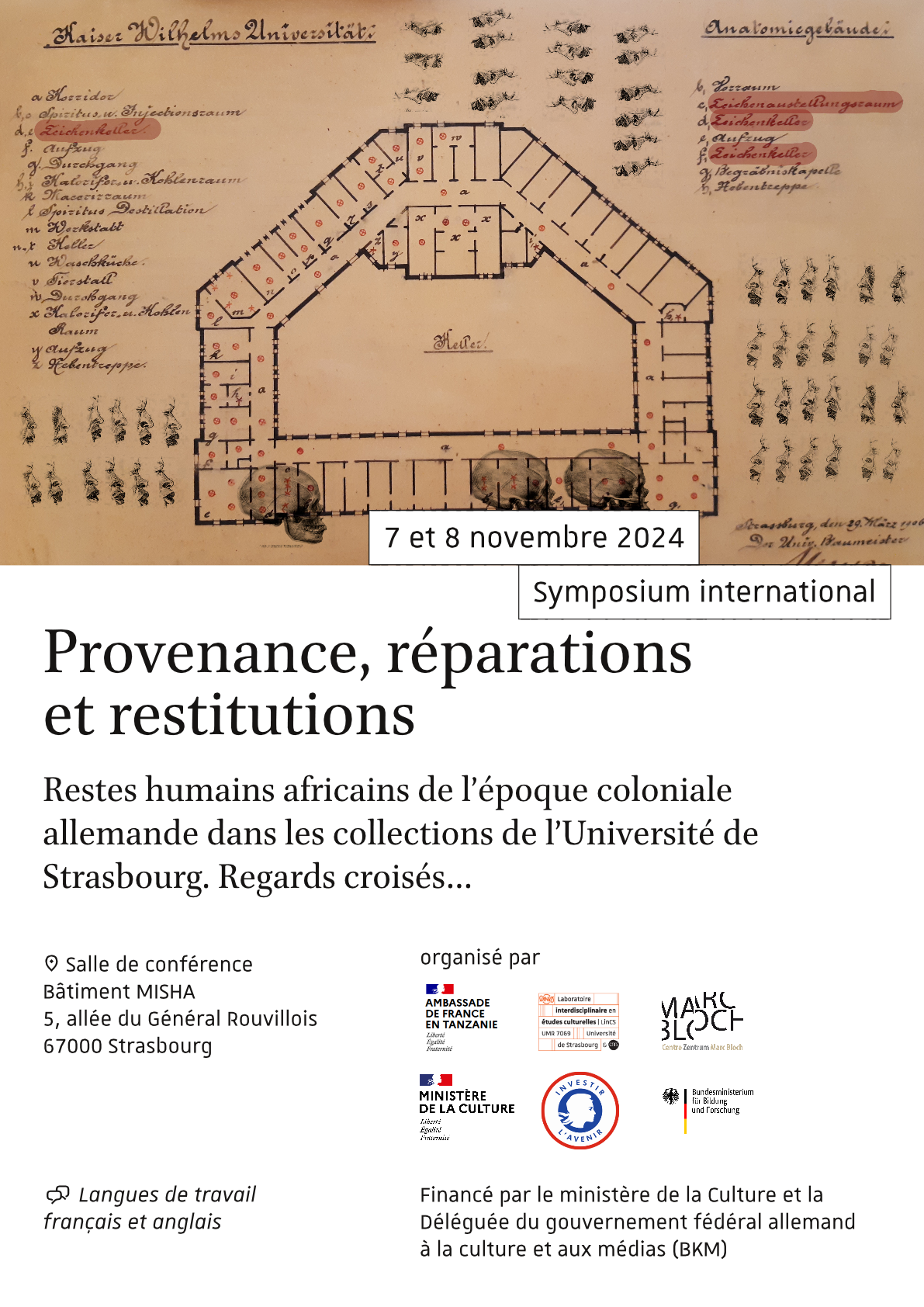 Ce symposium s’inscrit dans le projet ProHumStra (2024-2026), “Reconnecter les restes humains et les objets culturels : Recherche de provenance et ré-humanisation des restes ancestraux des anciennes colonies allemandes en Afrique à l’Université de Strasbourg”.