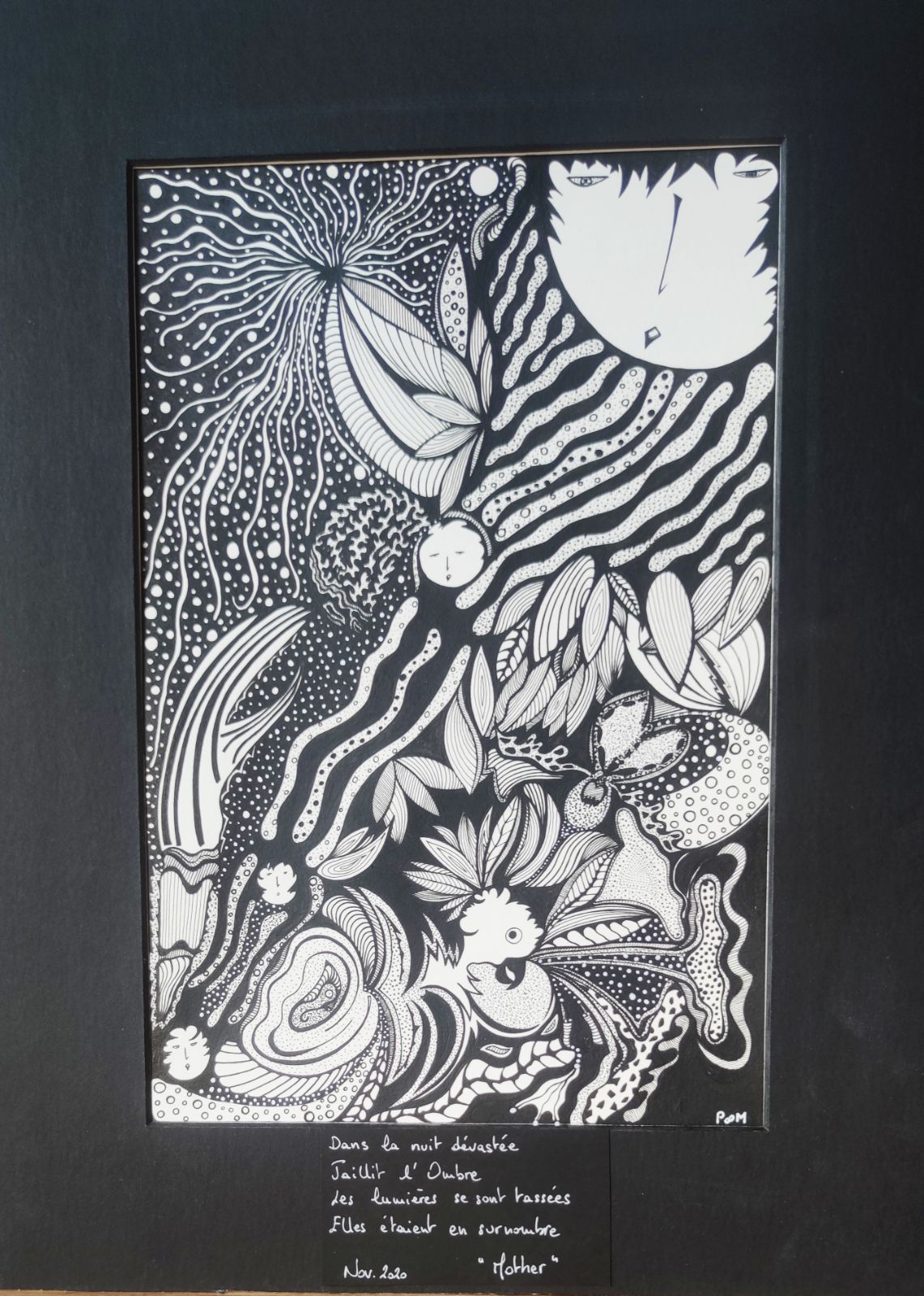 J'ai toujours dessiné, gribouillé, malaxé l'argile aussi, trituré le bois et même la pierre. Lorsque je me promène, j'explore, je regarde, examine, imagine et m'inspire de ce qui nous entoure et tout particulièrement dans la forêt, les prés et les vignes, les bords de mer… Le noir et blanc m'est apparu évident quand j'ai rencontré l'encre de Chine à 16 ans. Un jour de 2018, ma fille m'a fait écouter une chanson qui disait "ta peinture est belle, tu devrais l'encadrer" et me voilà !