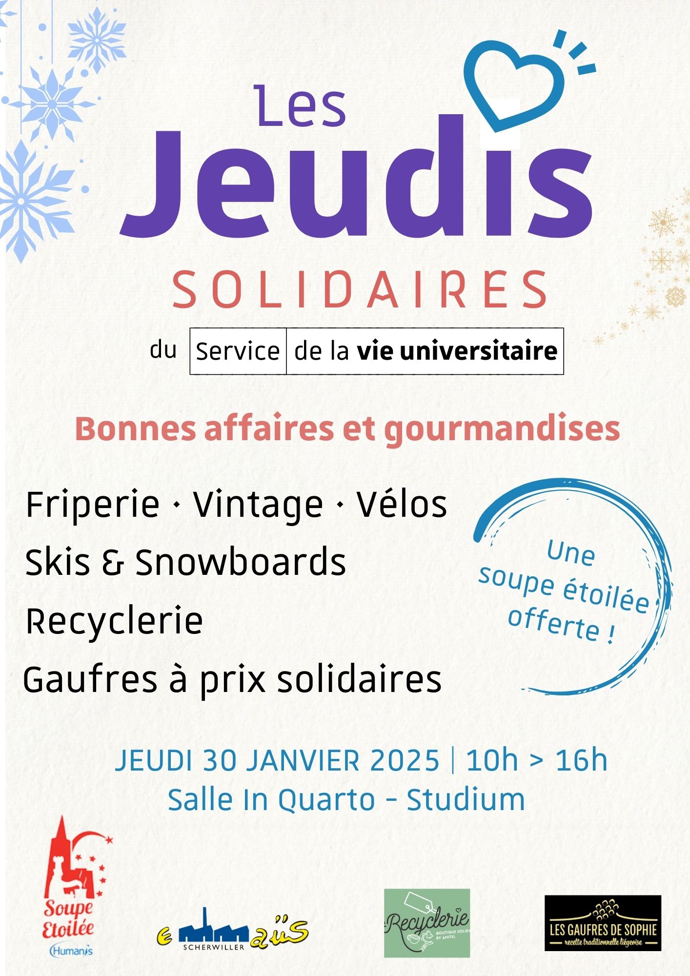 Un jeudi solidaire pour mêler bonnes affaires et plaisirs gourmands ! aura lieu vendredi 30 janvier à 10h