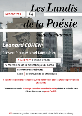 • 7 avril 2025 : « Poésie autour de l’œuvre de Leonard Cohen »