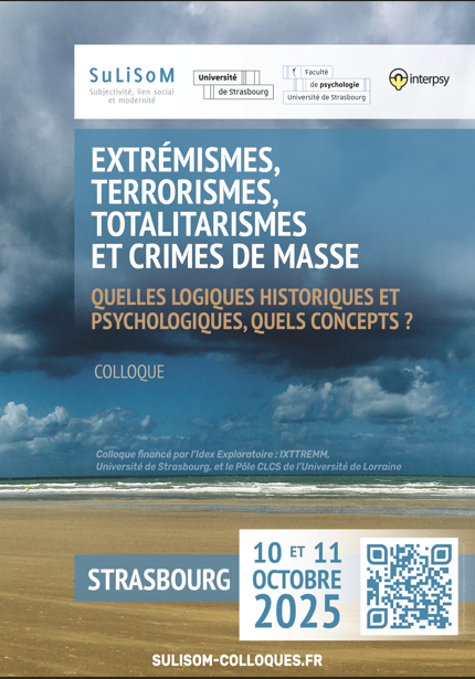 Terrorismes, totalitarismes et crimes de masse, suscitent depuis plus d’un demi-siècle nombre de débats concernant les dynamiques sociales et psychologiques des groupes et des individus qui y sont impliqués. La banalité du mal, la figure de l’homme ordinaire et la question de la soumission à l’autorité suffiraient-ils pour expliquer la marche vers la dictature, le crime de masse ou le terrorisme ? Aujourd’hui les chercheurs ont exhumé des archives des personnalités doctrinaires et psychopathiques, des méthodes de gouvernement pouvant susciter l’endoctrinement, l’embrigadement des masses, tandis que des études de cas ( en histoire ou en psychologie) soulignent depuis longtemps déjà les fonctionnements pathologiques de certains criminels de guerre, de leaders de régimes totalitaires et de certains terroristes. Comment penser ensemble ces différentes dimensions : autorité et système totalitaire, idéologie et fonctionnement psychopathologie, normalité et exactions, coercition du système et liberté de l’individu ? Nous maintenons, pour ce colloque, notre objectif de produire des hypothèses sur les concepts et les modèles qui peuvent servir à une meilleure compréhension de ces dynamiques mortifères.